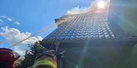 Kiedy pierwsze zastępy straży pożarnej dotarły na miejsce, zastały rozwinięty pożar poddasza. Ogień wychodził na zewnątrz budynku. Strażacy błyskawicznie przystąpili do akcji gaśniczej. Trwa walka z ogniem.
