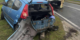 Jak się okazało, kobieta kierująca peugeotem wpadła w poślizg, w wyniku czego straciła panowanie nad kierownicą. Następnie zjechała na pobocze, gdzie następnie uderzyła w betonowy murek ogrodzenia jednej z posesji.