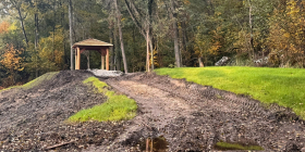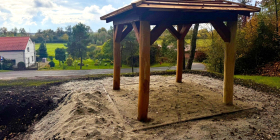 W październiku wykonawca zamontował pierwszą z dwóch wiat rekreacyjno-edukacyjnych – ta stanęła tuż przy stawie. Pojawiło się również ogrodzenie terenu, gdzie w przyszłości powstanie łąka kwietna.