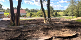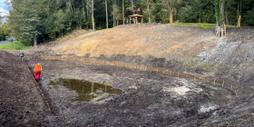 We wrześniu oczyszczono polanę, która w przyszłości będzie miejscem placu zabaw, siłowni i boiska do gry w bule. Równolegle wykonano prace przy stawie. Dno zostało oczyszczone i wzmocnione faszyną, a teren pod przyszłe alejki przygotowano do dalszych robót.