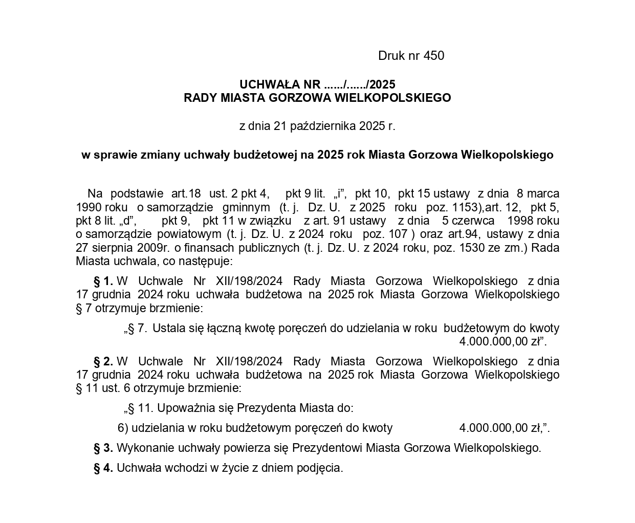 Radni będą głosować nad nową uchwałą budżetową, która umożliwi poręczenie kredytu w wysokości 4 mln zł dla Stali Gorzów. Pozostałe 5 mln zł mają pokryć prywatni akcjonariusze klubu. W uzasadnieniu uchwały czytamy, że poręczenie ma na celu wsparcie klubu w działaniach umożliwiających uzyskanie licencji na sezon 2026 PGE Ekstraligi.