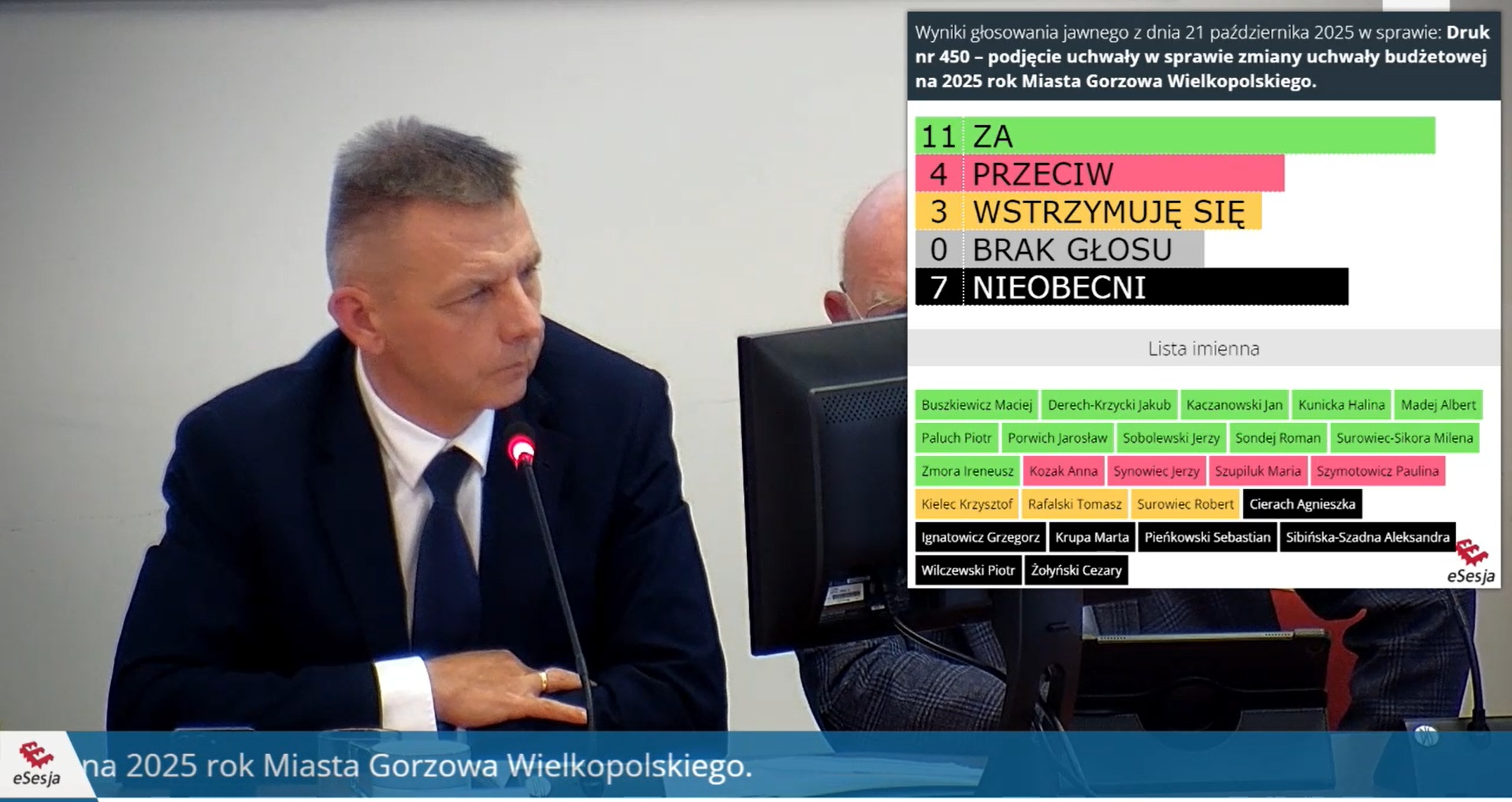 Po długiej debacie Rada Miasta Gorzowa, radni podjęli uchwałę w sprawie zwiększenia limitu poręczeń budżetowych do 4 mln zł. Tak wyglądało głosowanie: