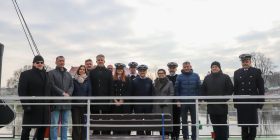 Miasto udostępniło kilka oficjalnych fotografii - wszyscy stoją na pokładzie, patrzą przed siebie, pozują przy relingu. To klasyczne ujęcia z wycieczki służbowej, które świetnie wyglądają na portalach społecznościowych.