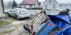 Od 54-latka wyraźnie było czuć alkohol. Badanie potwierdziło, że ma prawie dwa promile. W przyczepie, którą ciągnął, znajdowały się metalowe rury. Mężczyzna stracił panowanie nad autem, zjechał na pobocze, uszkodził ogrodzenie i uderzył w ścianę budynku.