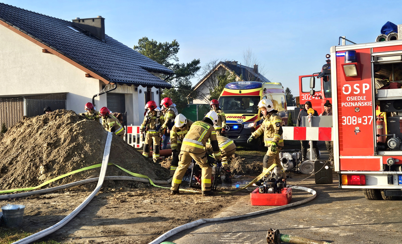 godz. 11.55 - Woda z wykopu została wypompowana. Mężczyzna został wyciągnięty na zewnątrz i przekazany załodze pogotowia.