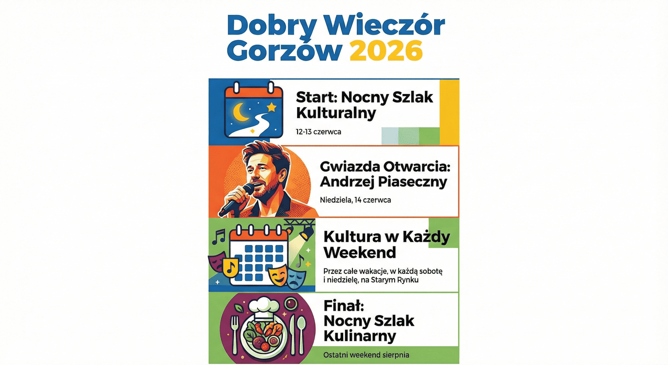 Tegoroczny cykl otworzy Nocny Szlak Kulturalny, zaplanowany na 12 i 13 czerwca. To wydarzenie, które co roku przyciąga tłumy – instytucje kultury, artyści i animatorzy wychodzą w przestrzeń miasta, a Gorzów żyje do późnych godzin nocnych.