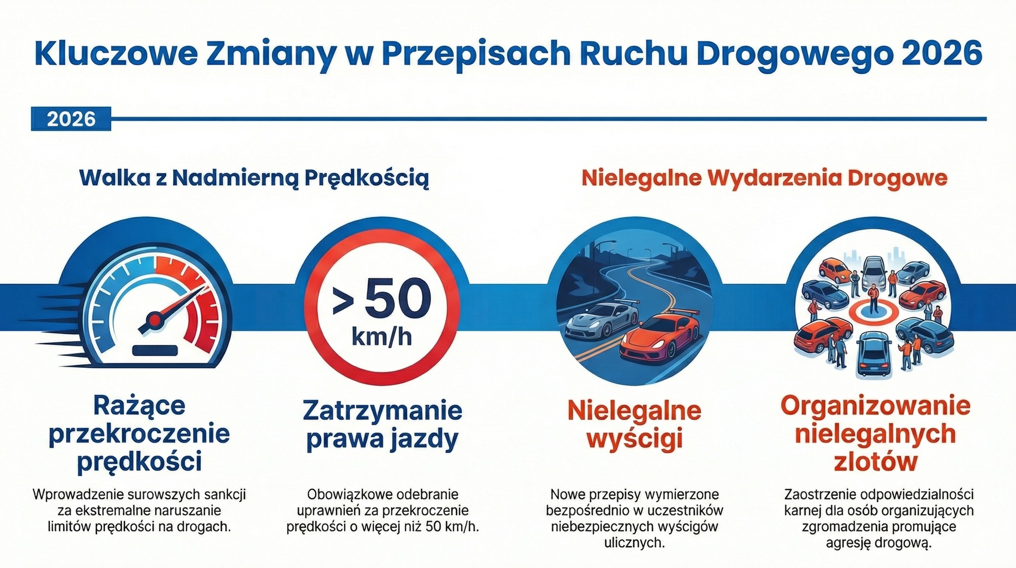 Od 29 stycznia 2026 roku w kodeksie karnym funkcjonuje jednoznaczna definicja nielegalnego wyścigu pojazdów mechanicznych. To oznacza koniec uznaniowości. Rywalizacja kierowców na drodze, rondzie czy parkingu może zostać wprost zakwalifikowana jako przestępstwo, jeśli narusza zasady bezpieczeństwa. Odpowiedzialność ponoszą nie tylko organizatorzy, ale także kierowcy biorący udział w nielegalnym wyścigu. Co istotne, nie musi dojść do wypadku, aby sprawa miała charakter karny.