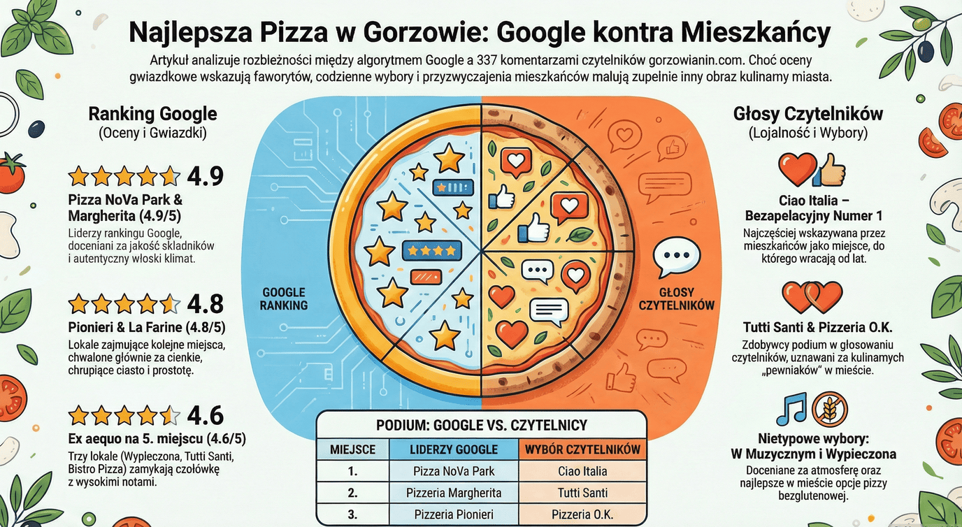 Pojawiły się również głosy, że nie ma w Gorzowie jednej naprawdę wybitnej pizzerii i każdy lokal ma swoje plusy i minusy. Te komentarze nie zmieniają czołówki, ale dobrze pokazują, że pizza to temat bardzo subiektywny i potrafi wywołać nie tylko emocje, ale też uśmiech.