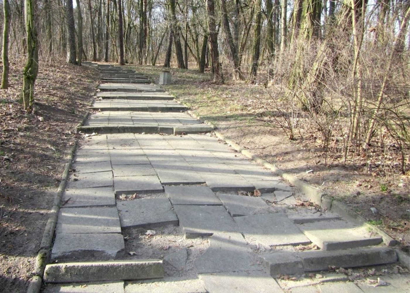 To właśnie tam znajdują się stare betonowe schody i chodnik. W dokumentacji zapisano wprost, że są w złym stanie technicznym i przeznaczone do rozbiórki.