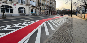 Oprócz zmian na ulicy Dąbrowskiego, nowe oznakowanie pojawiło się także na ulicy Jagiełły, gdzie obok przejścia dla pieszych wymalowano przejazd dla rowerzystów.