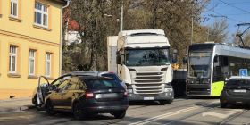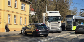 Oba pojazdy jechały ul. Podmiejską pod górkę w stronę ronda Solidarności. W wyniku zderzenia oba auta zatrzymały się po lewej stronie, tuż przy chodniku.