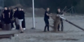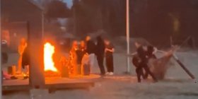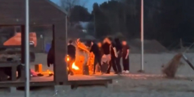- Kur.. palimy to całe. O kur... Ja pierd... Spier… stąd - słychać na nagraniu, gdzie młodzi ludzie niszczą słomiany parasol i wrzucają go do ognia.