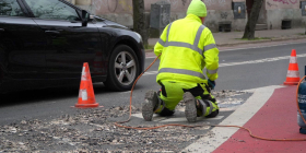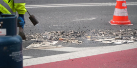 Na początek w ruch poszedł palnik. Pracownicy usuwają pole wyłączone z ruchu, czyli tzw. martwe pole, przy pomocy frezarki mechanicznej oraz palnika gazowego. Urządzenia te służą do rozgrzewania i wypalania resztek grubowarstwowej masy, z której wykonane były pasy. Dzięki takiemu połączeniu nawierzchnia jest dokładnie oczyszczona i przygotowana pod naniesienie nowego oznakowania.