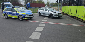 Mężczyzna kierujący skodą będąc na rondzie, zignorował czerwone światło i wjechał wprost pod nadjeżdżający tramwaj. W wyniku zderzenia poszkodowana została pasażerka Skody, która została zabrana do szpitala na badania.