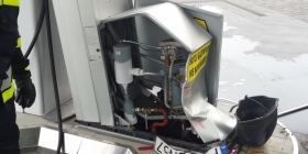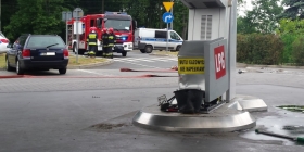 Kierowca białego mercedesa sprintera wjechał w dystrybutor LPG. Był wyciek gazu, ale sytuacja została opanowana. Na miejscu pracowało kilka wozów strażackich.