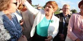 Oczywiście z mieszkańcami miasta spotkała się na bulwarze. Najpierw był Bulwar Zachodni, gdzie podjechała swoim Szydłobusem i została przywitana przez dzieci - były też oczywiście kwiaty. Następnie przeszła wzdłuż rzeki na Bulwar Wschodni, gdzie czekało około 200-300 osób oraz specjalny podest.