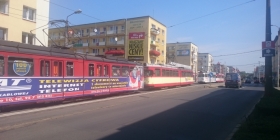 Wstrzymany jest również ruch tramwajów, ponieważ auto wraz z motocyklem zatrzymało się na torowisku.