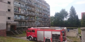 Okazało się, że pali się mieszkanie na pierwszym piętrze w tzw. hotelu pielęgniarek. Do walki z ogniem pojechało 5 zastępów straży pożarnej.