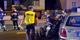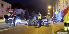 Około godz. 21 w wyjeżdżającego z podwórka citroena xsarę uderzają dwa rozpędzone motocykle. Siła jest uderzenia jest tak duża, że motocykle wbijają się w bok auta.