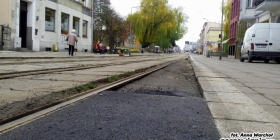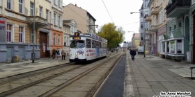 Zaczęło się od likwidacji zielonych, szpecących barierek wzdłuż torowiska przy ul. Chrobrego. Następnie wymalowano białe linie, które mają ostrzegać przechodniów przed tramwajem. A na sam koniec zajęto się usuwaniem nierównych i wystających krawężników oddzielających chodnik od torowiska.