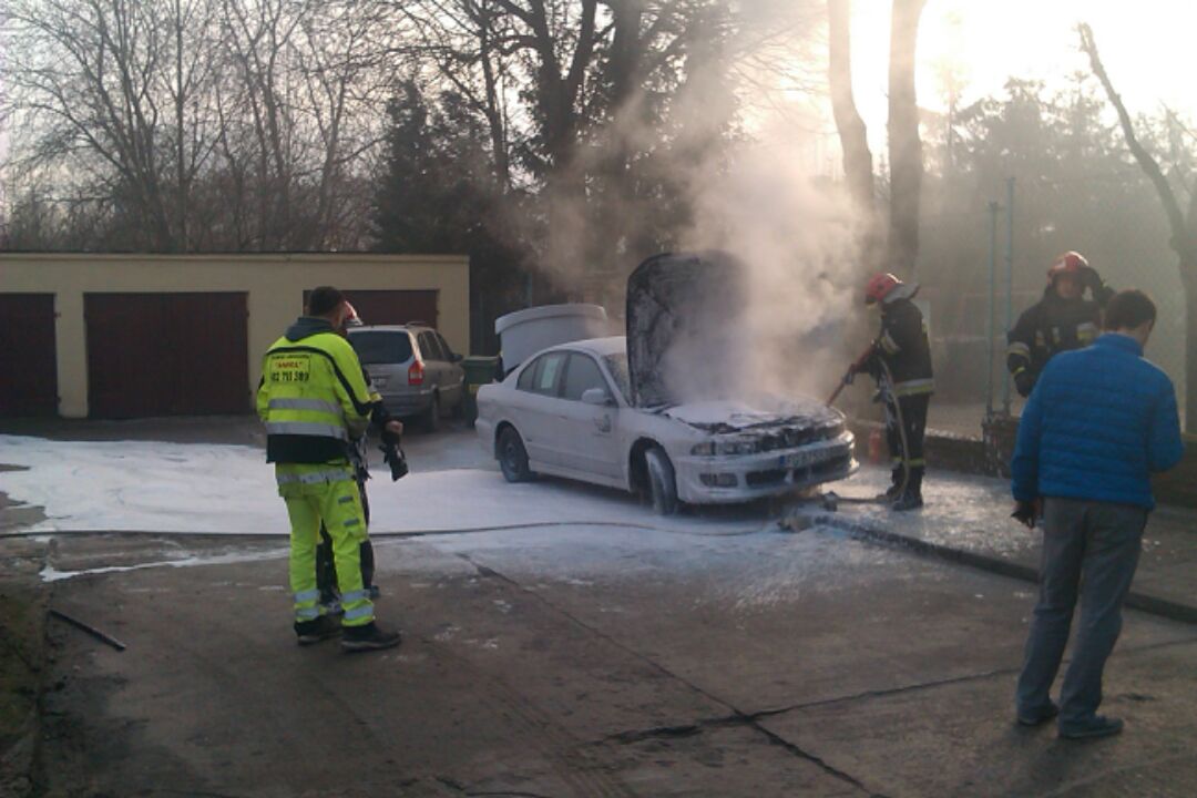 W mitsubishi galant zapaliła się komora silnika. Na miejsce został zadysponowany jeden zastęp straży pożarnej. Strażacy szybko ugasili ogień.
