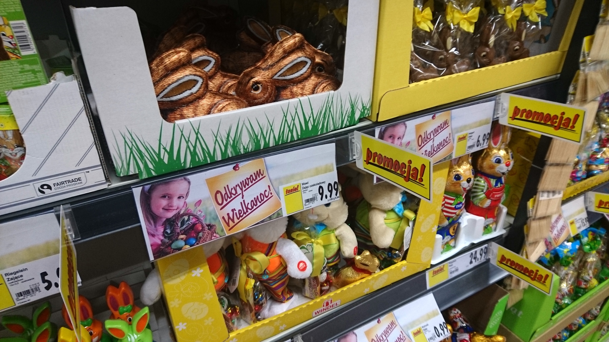 Od tygodnia w sklepach wielkopowierzchniowych zmieniany jest asortyment. Wszystko co czerwone i w kształcie serca zamieniane jest na zielone – w kształcie króliczków i białe - w kształcie baranków. Pierwsze pojawiają się wyroby czekoladowe i czekoladopodobne. Niewiele osób wie, że bożonarodzeniowe mikołaje, które nie znalazły swoich nabywców wracają do producentów, gdzie przerabiane są na... króliczki wielkanocne.