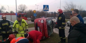 W wyniku uderzenia, fiat dachował i ostatecznie zatrzymał się na boku. Ranna została kobieta, która kierowała fiatem 500 - młoda kobieta została zabrana do szpitala.
