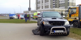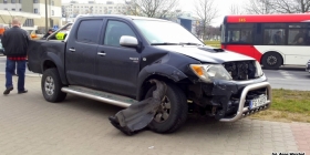 Informacje otrzymaliśmy na nasz dyżurny numer telefonu 515 016 102. To już „naste” z rzędu zdarzenie drogowe na tym skrzyżowaniu, odkąd wprowadzono zmianę organizacji ruchu. Tym razem na tym feralnym skrzyżowaniu doszło do zderzenia boczno-czołowego dwóch aut: potężnej toyoty hilux z osobowym fordem.