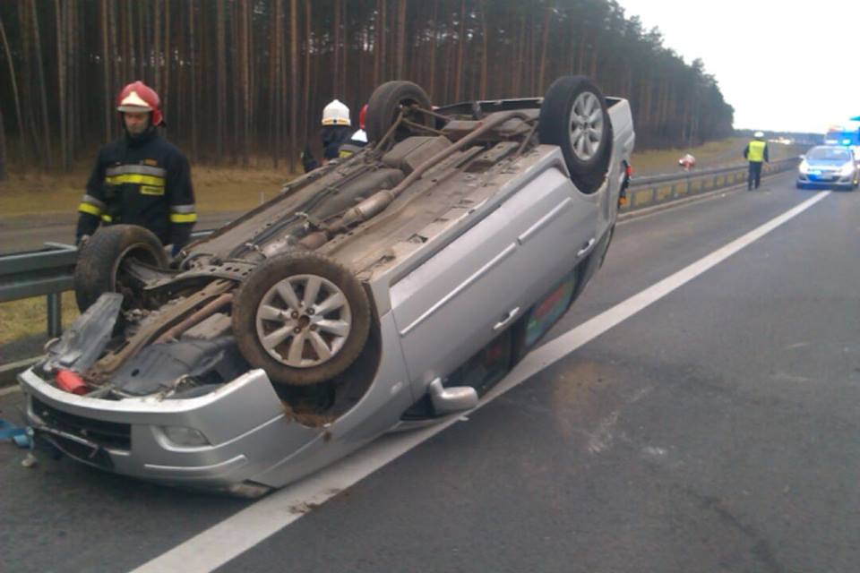 Z nieustalonych przyczyn suzuki liana dachował i zatrzymał się na pasie awaryjnym. Autem podróżowała kobieta z dzieckiem. Póki co stan obojga nie jest znany - trafili pod opiekę pogotowia.