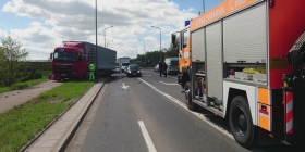 Droga jest obecnie zablokowana w obu kierunkach. Na miejscu jest straż pożarna oraz policja.