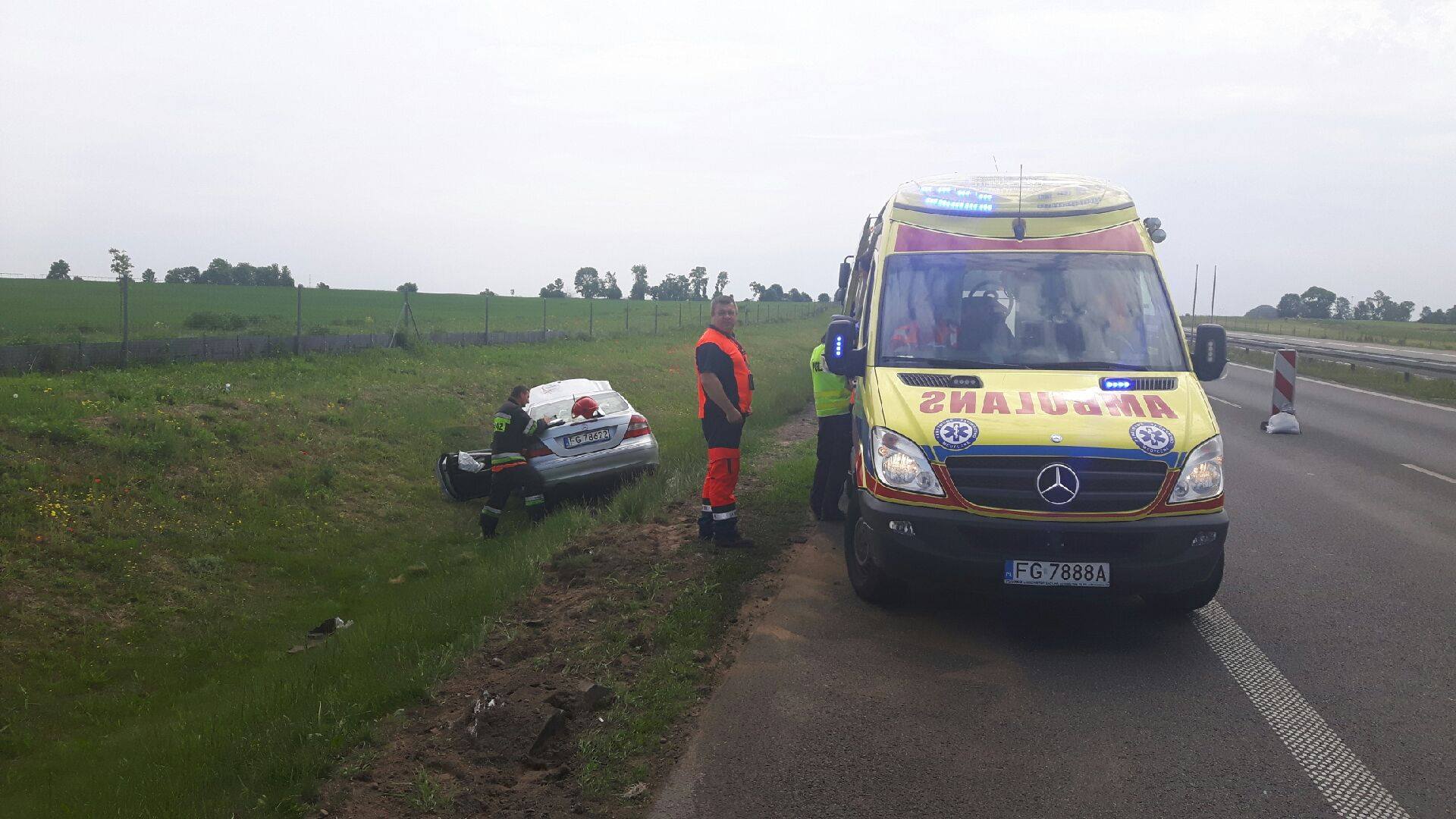 Kierowca mercedesa jechał od strony Szczecina, w pewnym momencie na zwężeniu obwodnicy Gorzowa z niewiadomych przyczyn zjechał z drogi i wylądował autem w rowie.