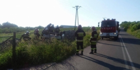 Informację o zdarzeniu otrzymaliśmy na nasz numer alarmowy 515 016 102 – od świadków, którzy przejeżdżali tą drogą. Na miejsce natychmiast zostały zadysponowane zespoły pogotowia ratunkowego oraz straż pożarna – w tym ciężki wóz ratownictwa technicznego. Po przyjeździe okazało się, że w rowie, tuż przy granicy miejscowości Kłodawa leży samochód osobowy przewrócony do góry kołami. Dwie osoby były zaopatrywane przez zespół ratownictwa medycznego.