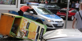 Jak relacjonowali świadkowie, kierujący samochodem marki BMW, na myśliborskich numerach rejestracyjnych nie opanował pojazdu, zjechał na przeciwległy pas ruchu i uderzył w stojącą tuż przy kiosku lodówkę z napojami. Uderzenie było tak silne, ze szafka przewróciła się na chodnik.