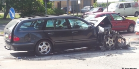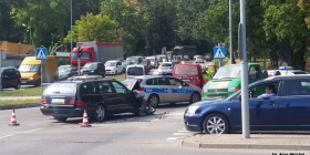- Według wstępnych ustaleń kierujący volkswagenem transporterem skręcając w lewo w ul. Żwirową przejechał na czerwonym świetle i zderzył się z jadącym prawidłowo na zielonym świetle mercedesem - komentuje Tomasz Bartos z zespołu prasowego Komendy Wojewódzkiej Policji w Gorzowie.
