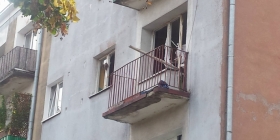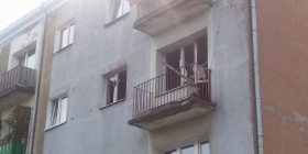 W mieszkaniu na drugim piętrze wybuchła butla z gazem. Siła wybuchu była na tyle duża, że zostały zniszczone okna, a szkło rozsypało się po całej ulicy - nawet w odległości 15 metrów od budyku.