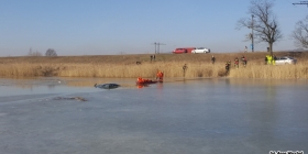 Po godz. 11 ktoś wjechał samochodem osobowym na zamarznięty kanał. W połowie drogi pod autem załamał się lód i auto zatonęło. Znad tafli wody wystaje tylko dach samochodu i otwarte drzwi.