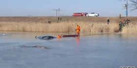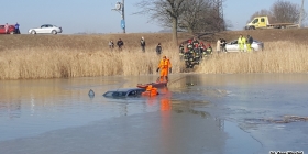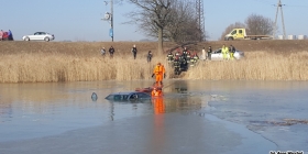 Według informacji świadków zdarzenia, samochodem jeździli nastolatkowie. W momencie, kiedy lód się zarywał po autem - udało się im uciec.