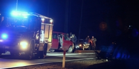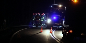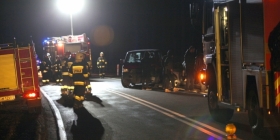 Na miejscu są trzy zastępy straży pożarnej oraz policja. Droga jest obecnie zablokowana.