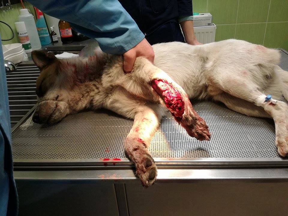 Pies został odnaleziony przez jedną z mieszkanek Witnicy, która przywiozła poważnie ranne zwierzę do lecznicy weterynaryjnej w Gorzowie. Pies miał poważną ranę lewej, przedniej łapki.