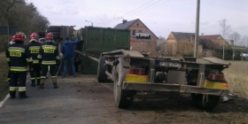 Na miejsce zdarzenia natychmiast zostały zadysponowane wozy Straży pożarnej oraz pogotowie ratunkowe. W akcji uczestniczy ciężki wóz ratownictwa technicznego. Strażacy po przyjeździe na miejsca zdarzenia okazało się, że na jezdnię przewrócił się samochód ciężarowy przewożący drewniane ścinki. Całe zdarzenia miało miejsce na 26 kilometrze DW 158. Jak wynika ze wstępnych oględzin, w naczepie samochód pękł resor wskutek czego ciężarówka marki MAN wraz z naczepą przewróciła się na jezdnię
