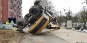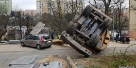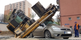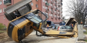 Do wypadku z udziałem koparki doszło w poniedziałek po godz. 9 przy ul. Nowej w Gorzowie. Koparka prowadzące prace przy rozbudowie parkingu, w pewnym momencie przewróciła się na bok i uderzyła w zaparkowany samochód marki ford fiesta. Samochód został bardzo mocno zniszczony - ma rozwalony dach, przednią i tylną szybę. Na szczęście w momencie wypadku, w środku forda nikogo nie było. Operator koparki nie doznał żadnych obrażeń.