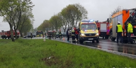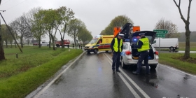 W wypadku został ranny 12-letni chłopiec, który podróżował volvo - ze złamana nogą trafił do szpitala. Poszkodowana zostało również pasażerka opla. Droga jest obecnie zablokowana.