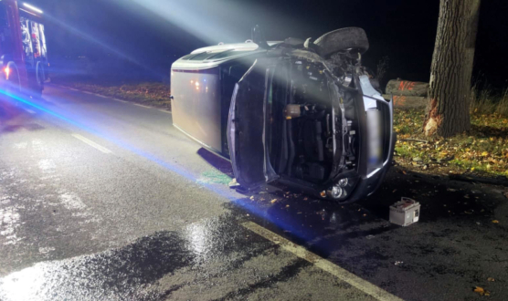 Kierujący oplem uderzył w drzewo i dachował. Nie miał uprawnień