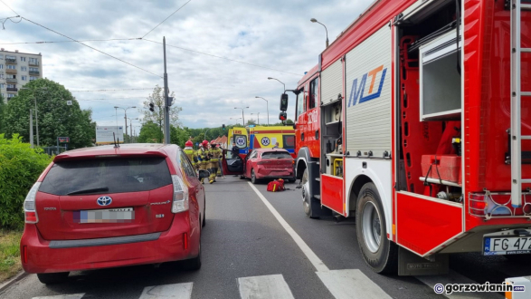 Zderzenie trzech aut w Gorzowie. Do szpitala trafiła dwójka dzieci i kierująca oplem