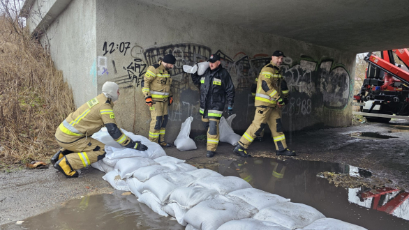 Gorzów: Stan alarmowy na Warcie coraz bliżej. Strażacy układają worki z piaskiem
