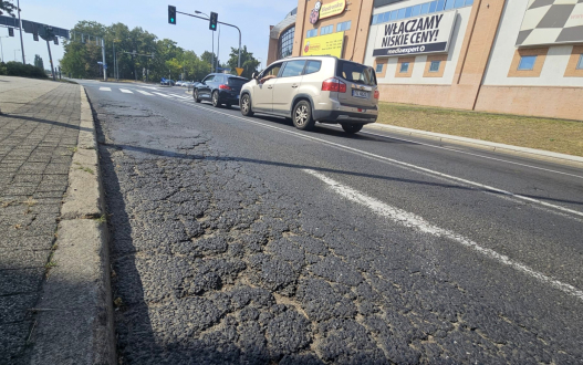 Zapadająca się nawierzchnia na Bulwarze Zachodnim w Gorzowie