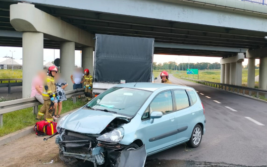 Zderzenie toyoty, citroena i ciężarówki na S3. Jedno auto przebiło bariery i dachowało